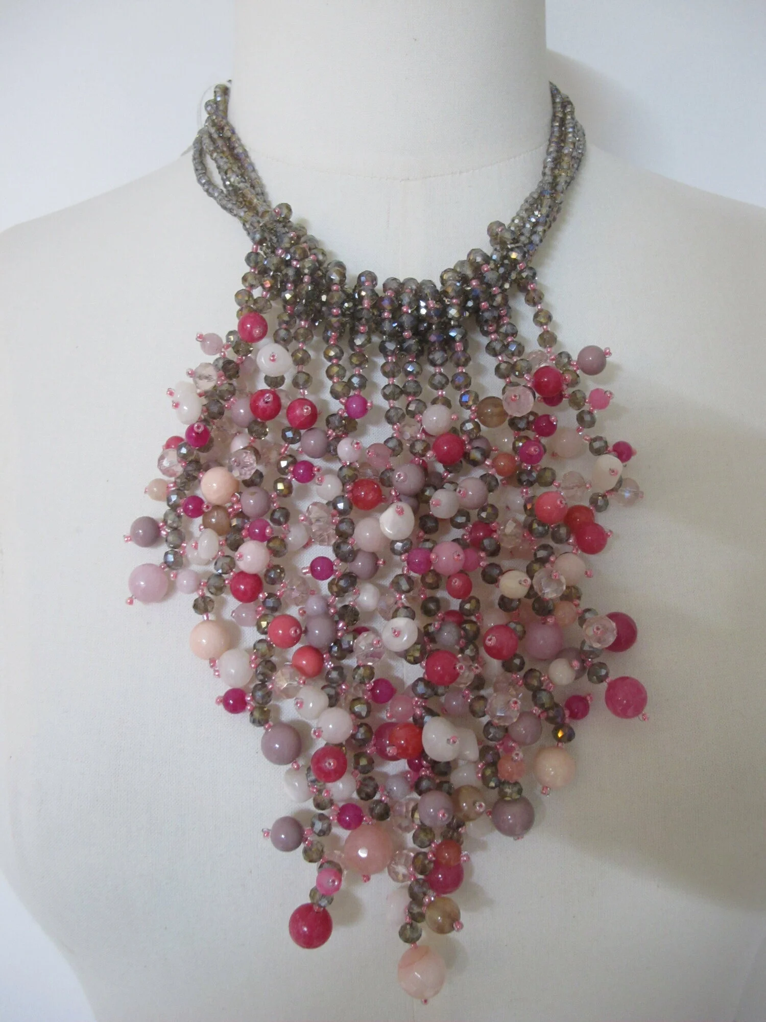 The Waterfall Necklace is lovingly handmade, hand knotted with precious crystals made in Thailand.