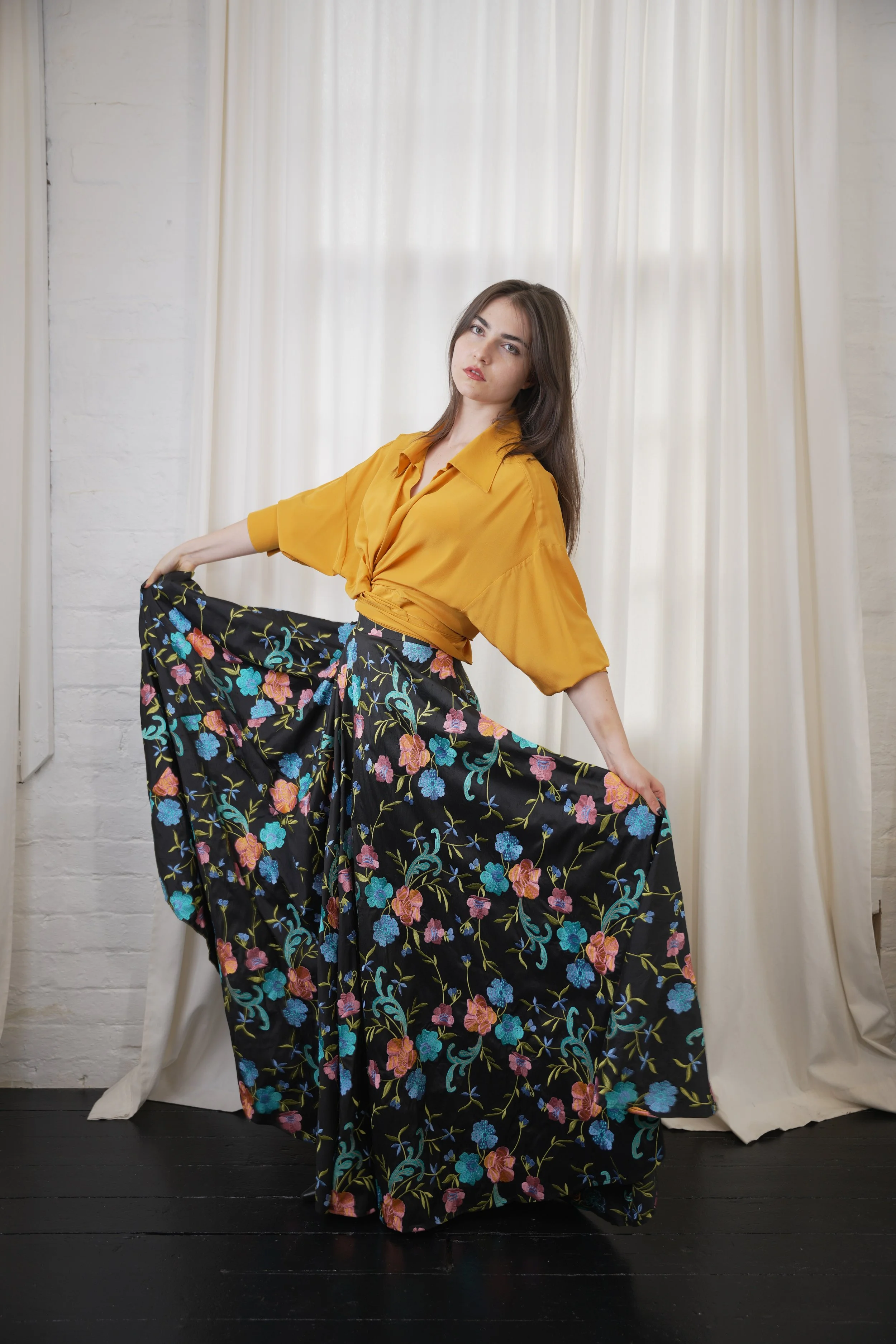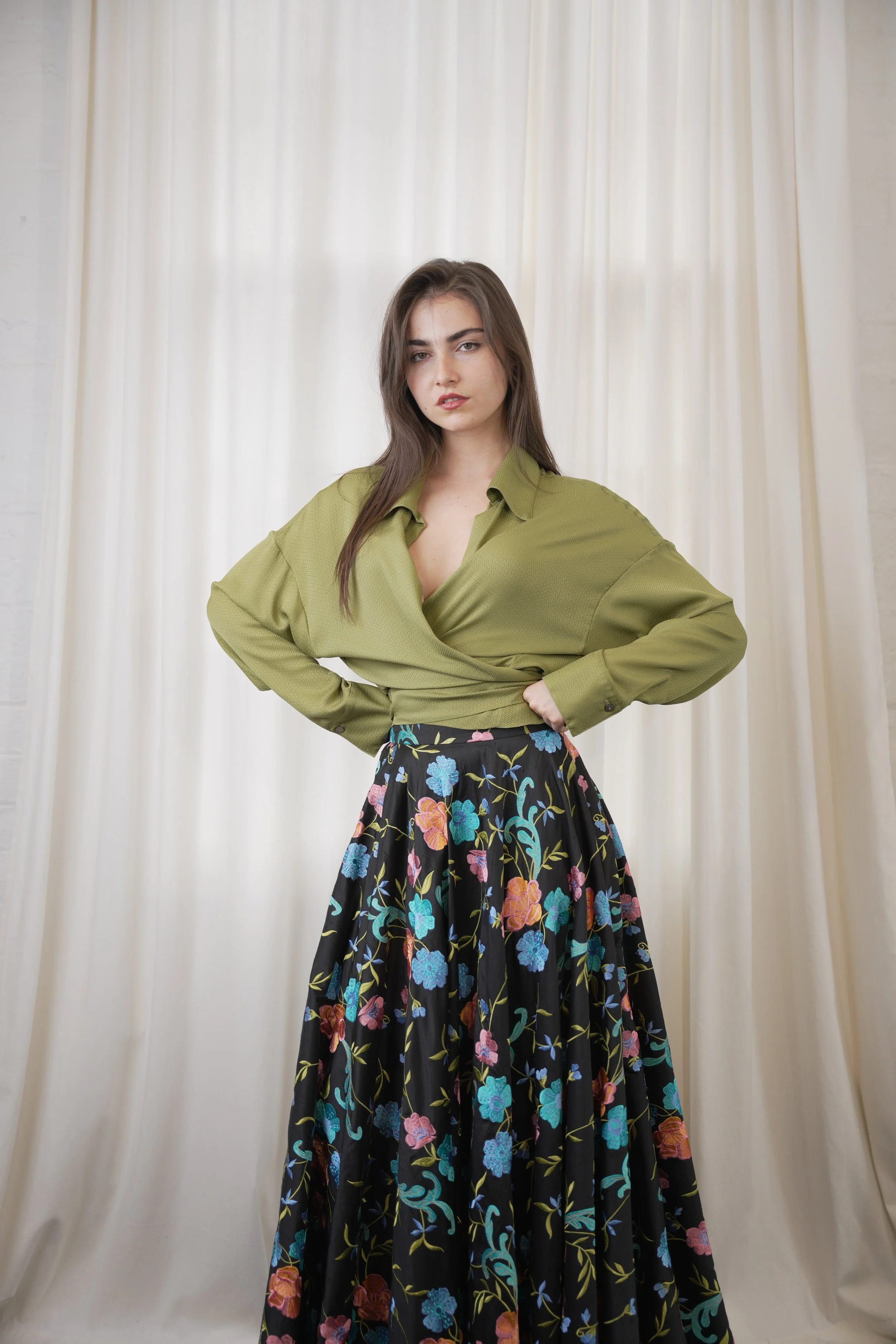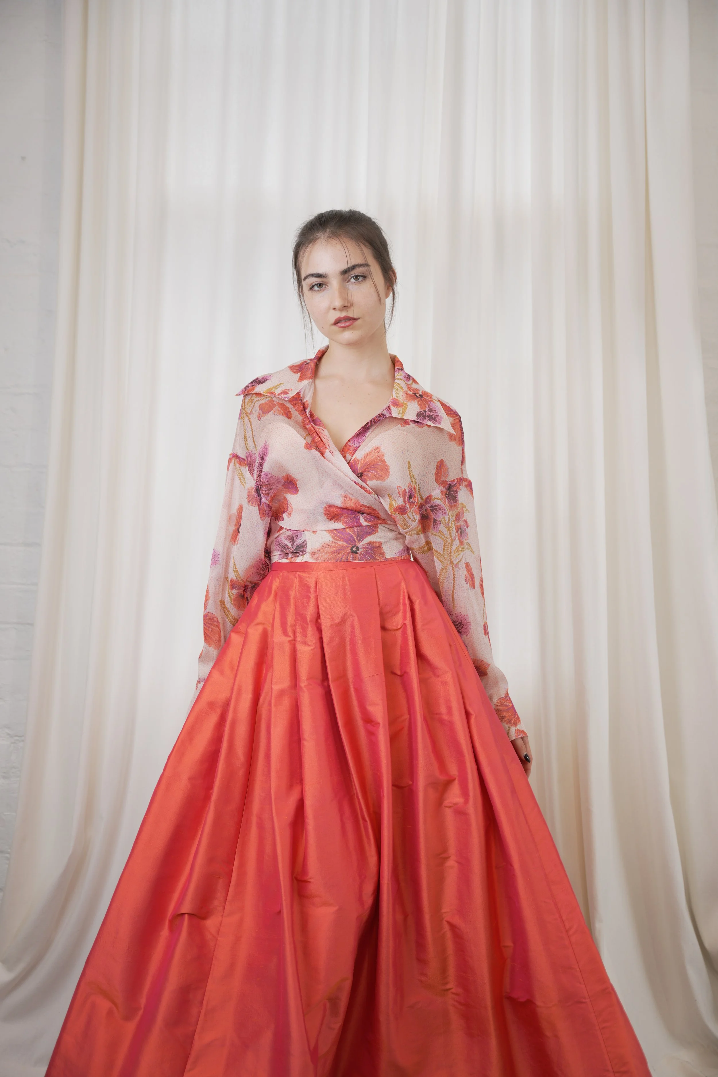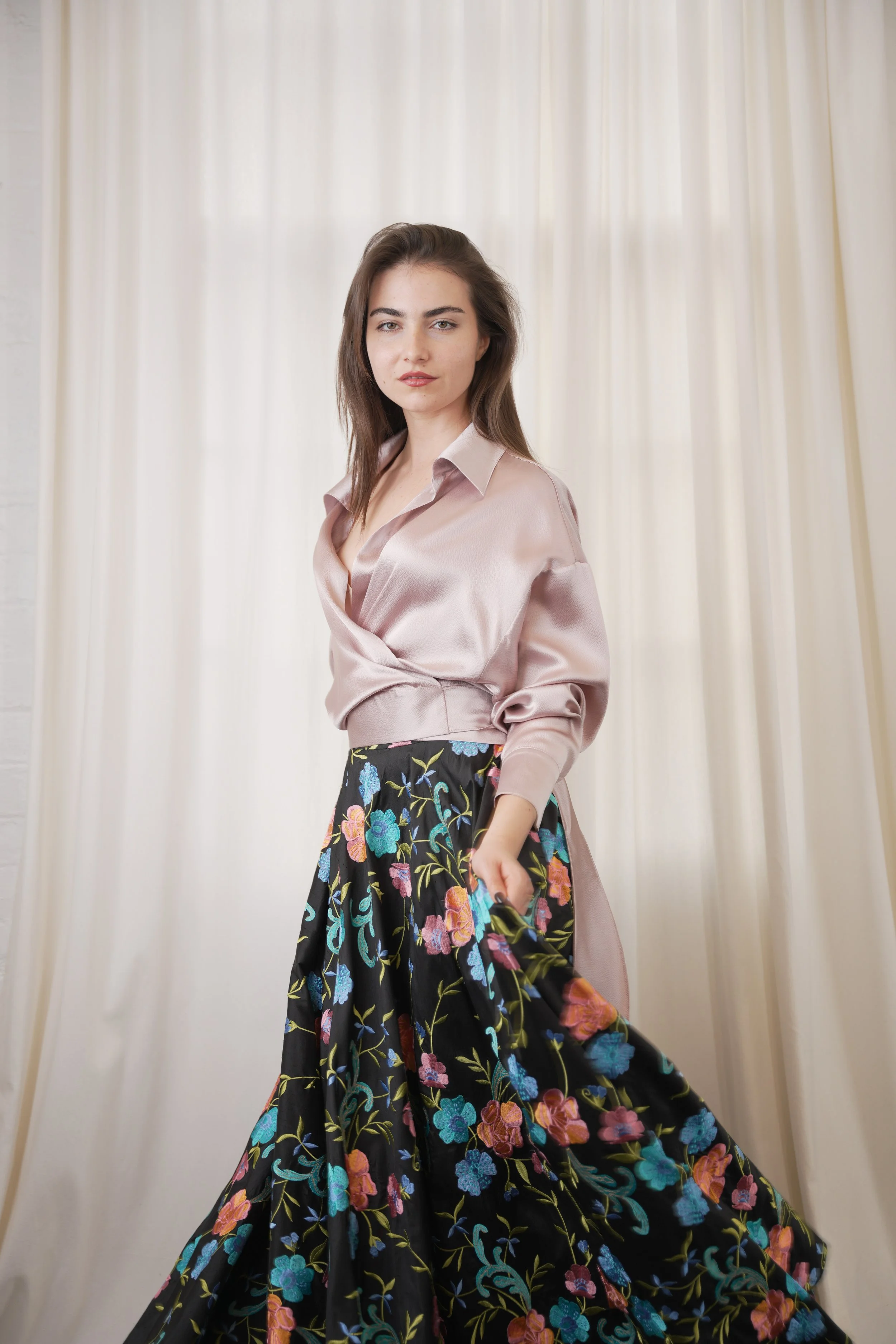 Parasol Skirt - Winter Garden 100% Silk Embroidered